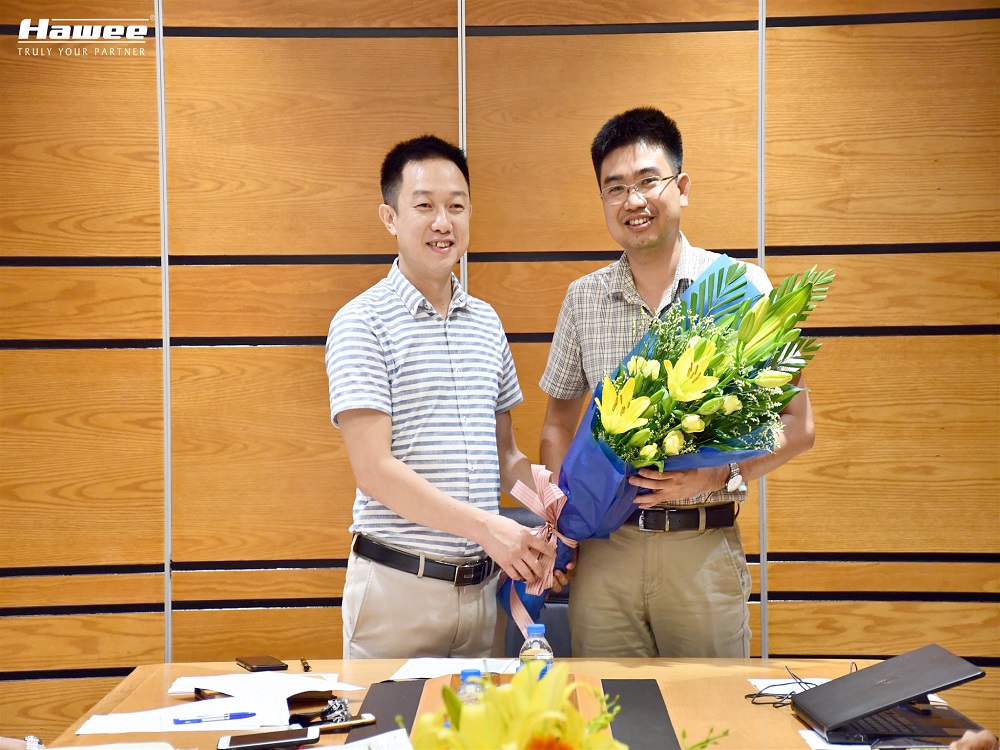 Mr Le Vu Long – Director of Hawee M&E gave flowers to congratulate Mr Nguyen Xuan Mai, representative and head of Business – Bidding 1 Department.